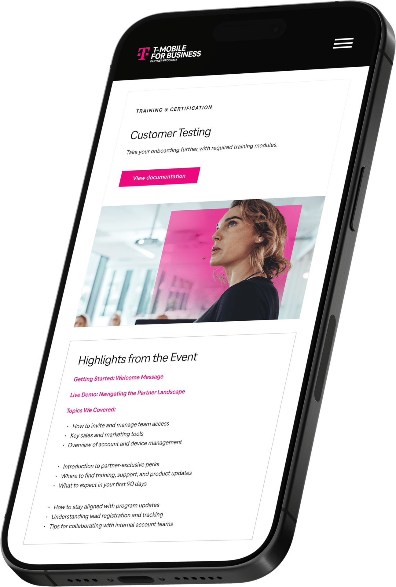I'm a Creative Technologist based in Denver, and I’m excited to take you behind the scenes of one of our most transformative projects for T-Mobile for Business. This project was a full-on reinvention of how their partners sell, learn, and grow. Let’s get into it.