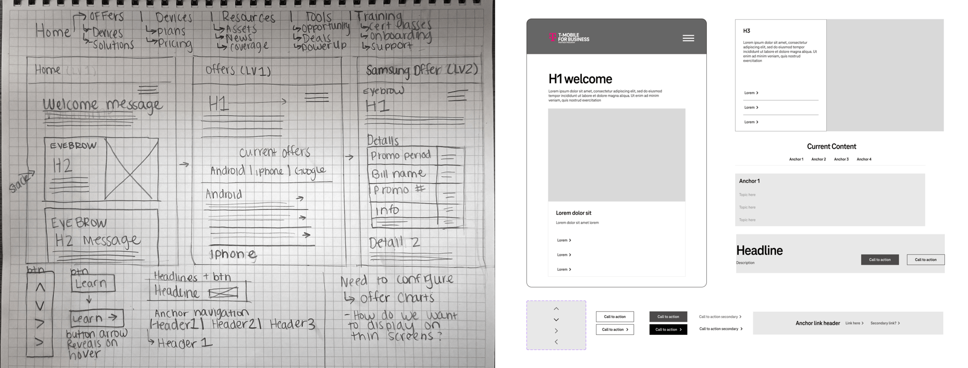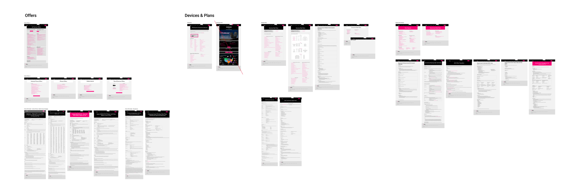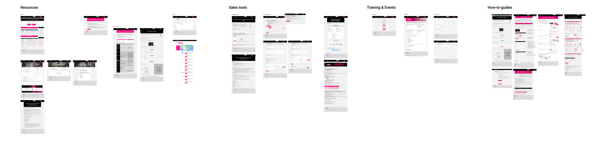We began by analyzing the current site structure: every page helped us identify the end-to-end journey. Through this audit, we uncovered six major content groupings: Offers, Devices & Plans, Resources, Sales Tools, Training & Events, and How-To Guides.